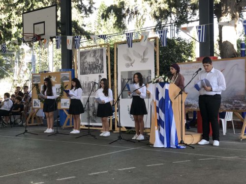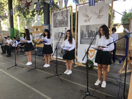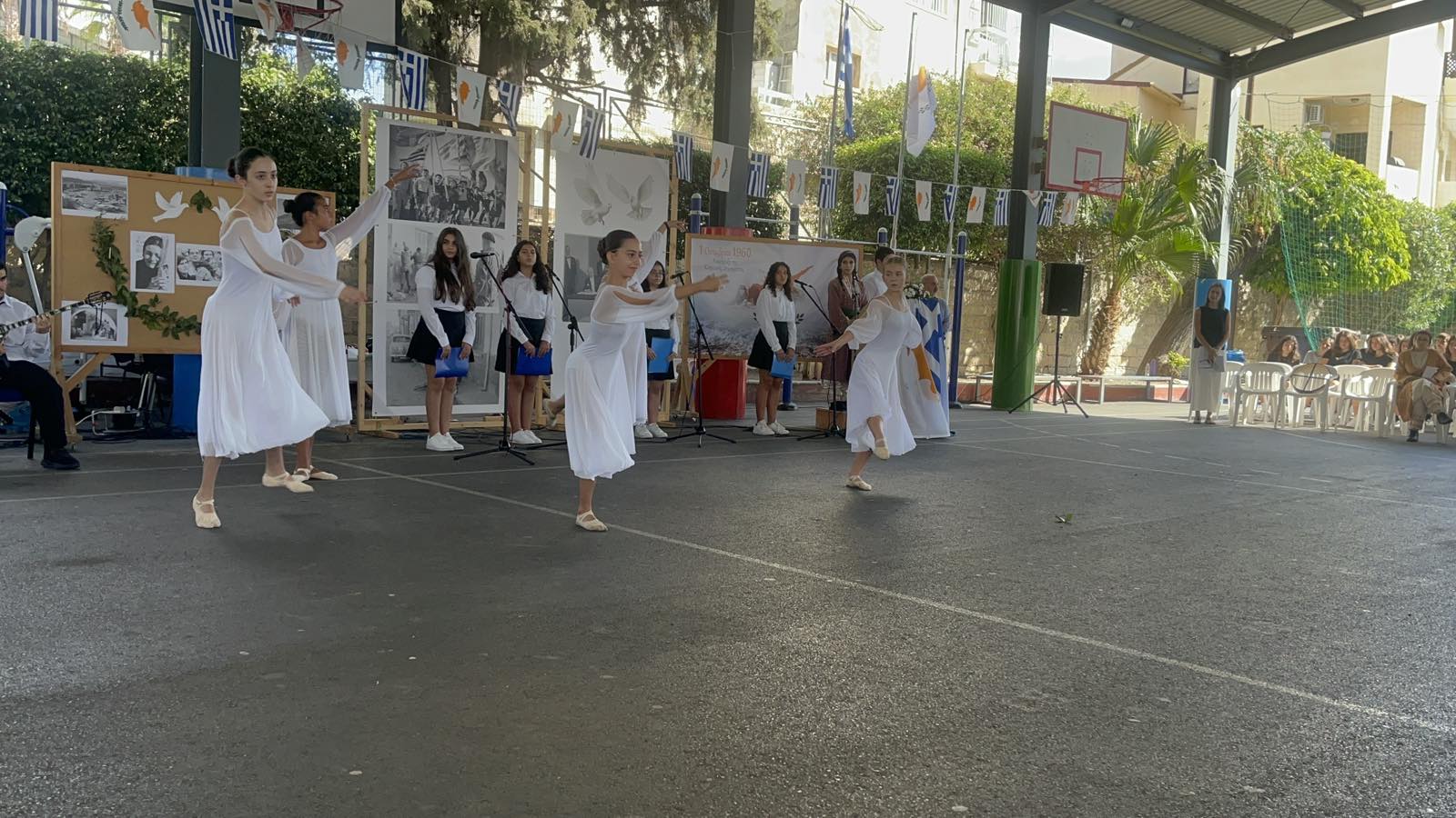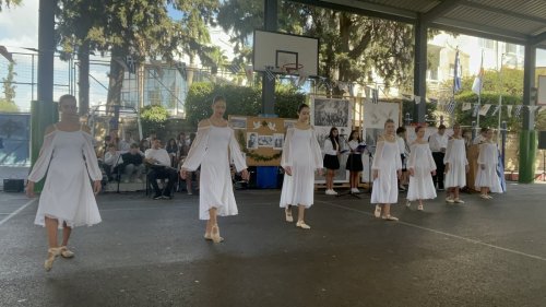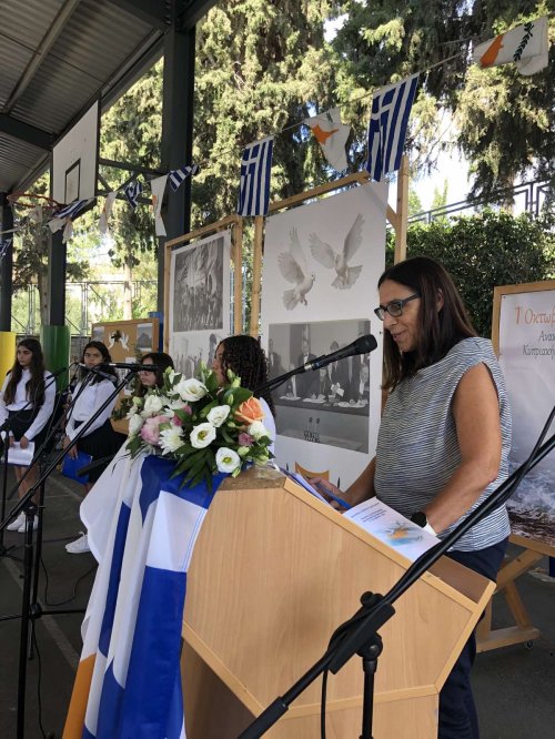Το Σχολείο μας τίμησε σήμερα την επέτειο της Ανακήρυξης της Κυπριακής Δημοκρατίας με μια όμορφη και σεμνή εκδήλωση. Έναρξη στην εκδήλωση έκαναν μαθήτριες του σχολείου μας που χόρεψαν με σύγχρονο χορό το τραγούδι, «Η Κύπρος - Ένας κόσμος γεννιόταν», σε στίχους της Κλαίρης Αγγελίδου και μουσική Κώστα Κακογιάννη και απέδωσαν με καλλιτεχνικό τρόπο τιμή στους αγώνες, την ιστορία και την ταυτότητα του έθνους μας. Η εκδήλωση συνεχίστηκε με απαγγελίες ποιημάτων και αφηγήσεις, που εξιστορούσαν με γλαφυρότητα τα ιστορικά γεγονότα τα οποία οδήγησαν στην ανακήρυξη της Κυπριακής Δημοκρατίας το 1960 αλλά και τα δεινά που ακολούθησαν. Η εκδήλωση διανθίστηκε με σύγχρονο και παραδοσιακό χορό και τραγούδι. Μαθήτριες του σχολείου μας χόρεψαν το τραγούδι «Τραγουδώ το νησί μου», σε στίχους Θεοδόση Πιερίδη και μουσική Γιώργου Θεοφάνους, και ακούστηκε το τραγούδι «Θα σημάνουν οι καμπάνες» από τη χορωδία και ορχήστρα του σχολείου μας. Η εκδήλωση ολοκληρώθηκε με παραδοσιακούς κυπριακούς χορούς. Το αφηγηματικό μέρος επιμελήθηκαν οι φιλόλογοι κα Ειρήνη Παναγιώτου και κα Κάλια Κανάρη. Τη διδασκαλία σύγχρονου, παραδοσιακού χορού και την επιλογή της μουσικής είχε η κα Έμιλη Τοουλάκου, Β.Δ. καθηγήτρια Φυσικής Αγωγής ενώ το τραγούδι δίδαξε και επιμελήθηκε ο καθηγητής της μουσικής κος Νικόλας Πέτρου.Τη γενική επιμέλεια της εκδήλωσης είχε η κα Μάρω Ιορδάνου Β.Δ. και η κα Έμιλη Τοουλάκου Β.Δ. Η σημερινή εκδήλωση μας υπενθύμισε τη σημασία της εθνικής ανεξαρτησίας και της δημοκρατίας, καθώς και το χρέος μας να τιμούμε το παρελθόν συμβάλλοντας στην ενότητα και την διατήρηση της μνήμης.