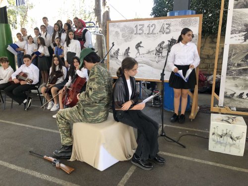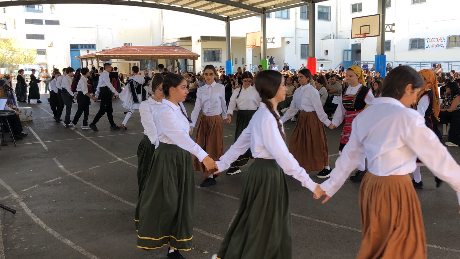 Στη συνέχεια, ακολούθησε το καλλιτεχνικό μέρος της εκδήλωσης. Το αφηγηματικό μέρος επιμελήθηκαν οι Φιλόλογοι κα Ειρήνη Παναγιώτου και κα Κάλια Κανάρη.Τον σύγχρονο και ελληνικό χορό χασάπικο δίδαξε και επιμελήθηκε η κα Έμιλη Ριαλά Τοουλάκου Β.Δ. καθηγήτρια Φυσικής Αγωγής.Tους ελληνικούς παραδοσιακούς χορούς η κα Μαρία Γιάγκου, ενώ τα τραγούδια ο μουσικός κ. Νικόλας Πέτρου.Την εποπτεία της εκδήλωσης είχαν η Β.Δ. κα Μαρία Ιορδάνους και η Β.Δ. κα. Έμιλη Ριαλά Τοουλάκου.