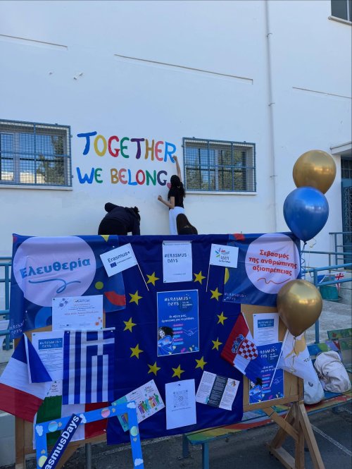 Γιορτάσαμε επίσης την συμμετοχή του σχολείου μας και των μαθητών μας στα Ευρωπαϊκά προγράμματα με δραστηριότητες κατά την διάρκεια των διαλειμμάτων. Είμαστε όμως ιδιαίτερα χαρούμενοι που σήμερα, στα πλαίσια του προγράμματος μας ‘Together We Belong’ ξεκίνησε από τους μαθητές η δημιουργία του τοίχου συμπερίληψης και αποδοχής της διαφορετικότητας.