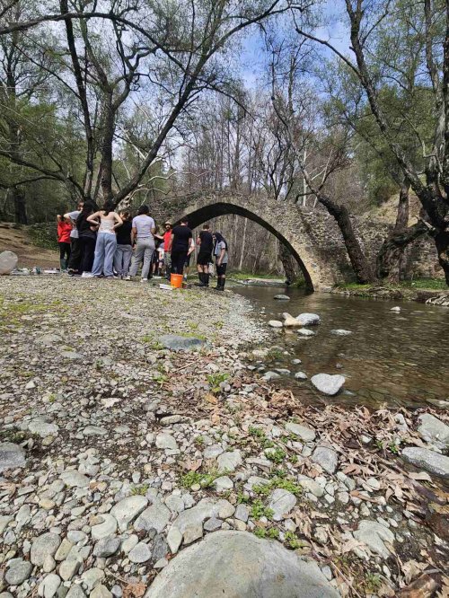 Η 1η μέρα ξεκίνησε με τη θεματική ενότητα «Το νερό στη ζωή μας», όπου έγινε επίσκεψη στο πανέμορφο γεφύρι του Τζελεφού, ένα μεσαιωνικό στολίδι της φύσης, όπου πραγματοποιήθηκε μελέτη πεδίου σε ποτάμιο οικοσύστημα. Οι μαθητές παρατήρησαν βιοτικούς και αβιοτικούς παράγοντες του ποταμού, μαθαίνοντας για τη σημασία των υδάτινων οικοσυστημάτων. Στη συνέχεια, στα πλαίσια της θεματικής ενότητας «Ενέργεια», εξερευνήθηκε η βιοκλιματική αρχιτεκτονική των παραδοσιακών σπιτιών του Πεδουλά και η αξιοποίηση των στοιχείων της φύσης που συναντούμε. Μέσα από περιήγηση στο χωριό, έγινε γνωριμία με ενδημικά φυτά όπως ο Κυπριακός Κέδρος και η Λατζιά (Εθνικό Δέντρο της Κύπρου) και οι μαθητές ενημερώθηκαν για τη σχέση φύσης, ενέργειας και τοπικής αρχιτεκτονικής. Στη συνέχεια, ανέπτυξαν δεξιότητες γεωγραφικού προσανατολισμού μέσα από πρακτικές ασκήσεις.
